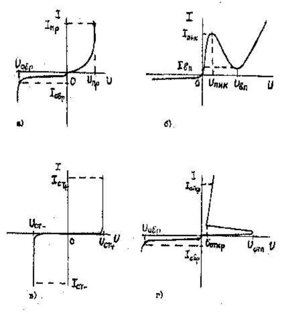 На рис.2 приведены типичные вольтамперные характеристики различных типов диодов.