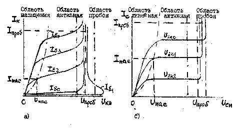 В области отсечки или пробоя характерными значениями являются напряжение