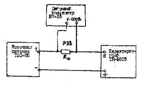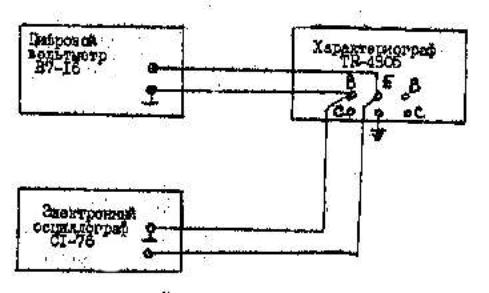 Ток, протекающий в цепи, измеряют при помощи цифрового вольтметра В7-16 по падению напряжения на образцовом резисторе R0, в качестве которого используют магазин сопротивлений РЗЗ. Измеренный ток должен соответствовать положениям переключатель VERT.CURR/DIV. Например, в положении переключателя 5 мА/дел измеренный ток должен быть равен 50 мА. Значение измеренного тока определяют по формуле
