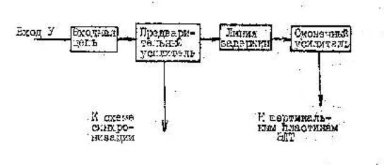 Оконечный усилитель канала У обеспечивает усиление исследуемого сигнала до значения, необходимого для отклонения луча ЭЛТ в пределах экрана по вертикали. С помощью этого усилителя обеспечивается согласование параметров входного сигнала с характеристиками ЭЛТ.