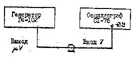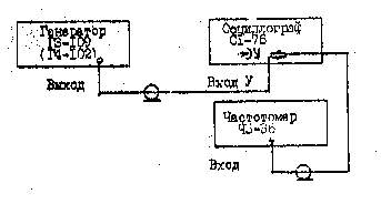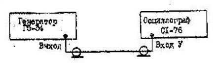 2.1. Определение погрешности коэффициента развертки канала горизонтального отклонения проводят по схеме, изображенной на рис.12. При этом выходное напряжение от генератора ГЗ-109 (или Г4-102) подводят к входу У осциллографа, а его частоту контролируют при помощи цифрового частотомера Ч3-36.