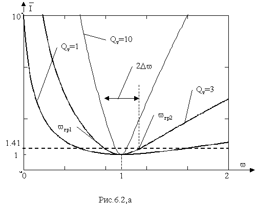 D v = v 2гр-v 1гр=1/Qт.Граничными частотами полосы пропускания частот являются частоты, при которых ток, потребляемый цепью от источника, в √2 раз превышает свое резонансное значение.