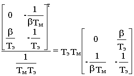 11= -1/Тэ, а12= -b /Тэ, а21= 1/b Тм и а22=0, получимe At =