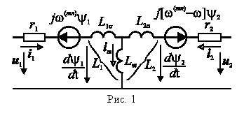 Уравнения электрической цепи статора и ротора можно графически представить электрической схемой, показанной на рис. 1. Она отличается от схемы замещения трансформатора наличием источников ЭДС вращения в цепях статора и ротора.