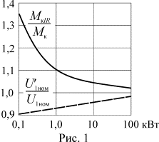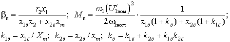 Отношение критического абсолютного скольжения к скольжению на естественной характеристике практически соответствует кривой отношения критических моментов, поэтому жесткость характеристик при любой частоте одинакова и равна жесткости естественной характеристики.