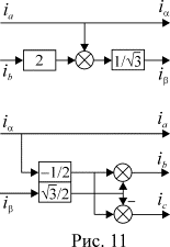 В современных приводах АД чаще всего работают в схеме без нулевого провода, поэтому преобразования числа фаз для них имеют вид